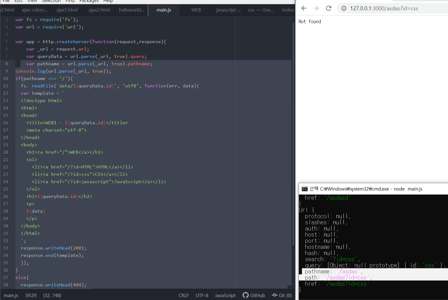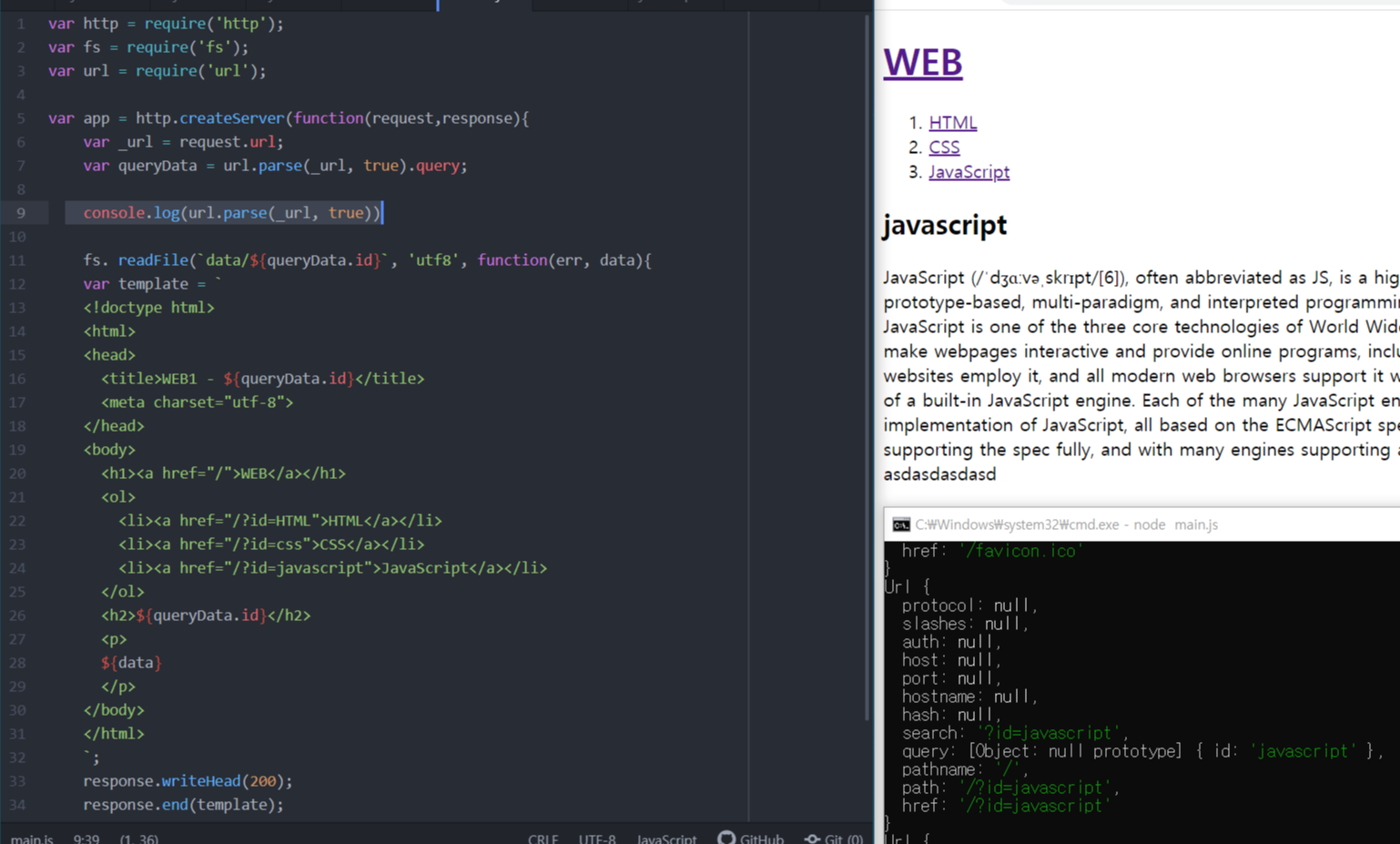 url.parse(_url,true);는 주어진url정보를 분석해서 객체의 형식으로 보여준다