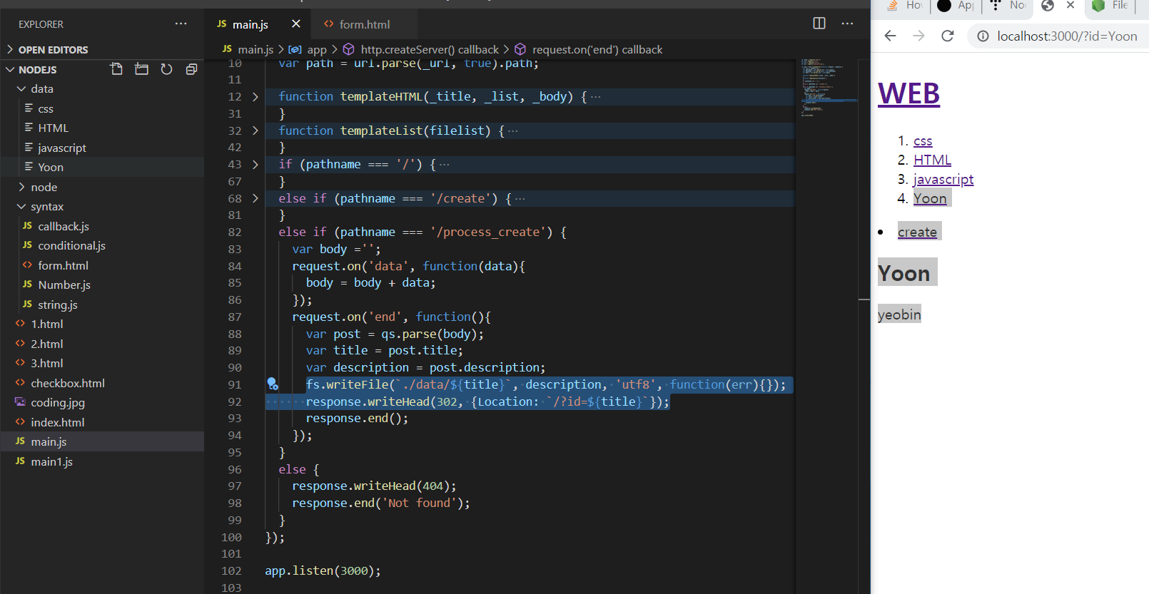 목표 : 포스트방식으로 전송된 데이터를 data라는 디렉토리 안에 파일을 생성시켜 파일의 형태로 저장하고,