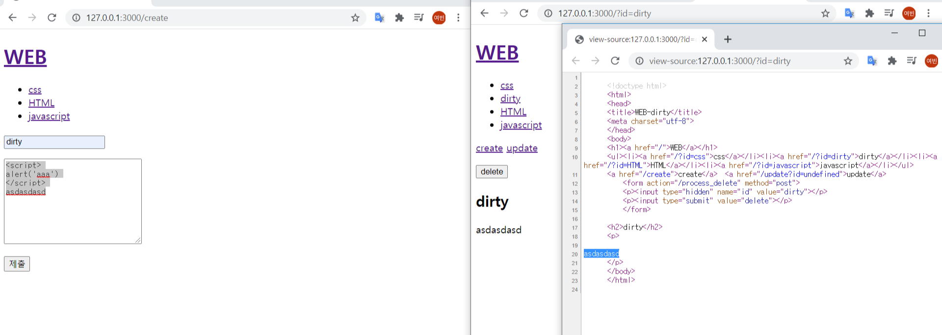 즉 따라서 create나 update등 을 했을때 튕겨져서 최종적으로 표시되는 /?id=~~~ id값이 존재하는 경우의 코드에 살균을 적용시키기만하면된다