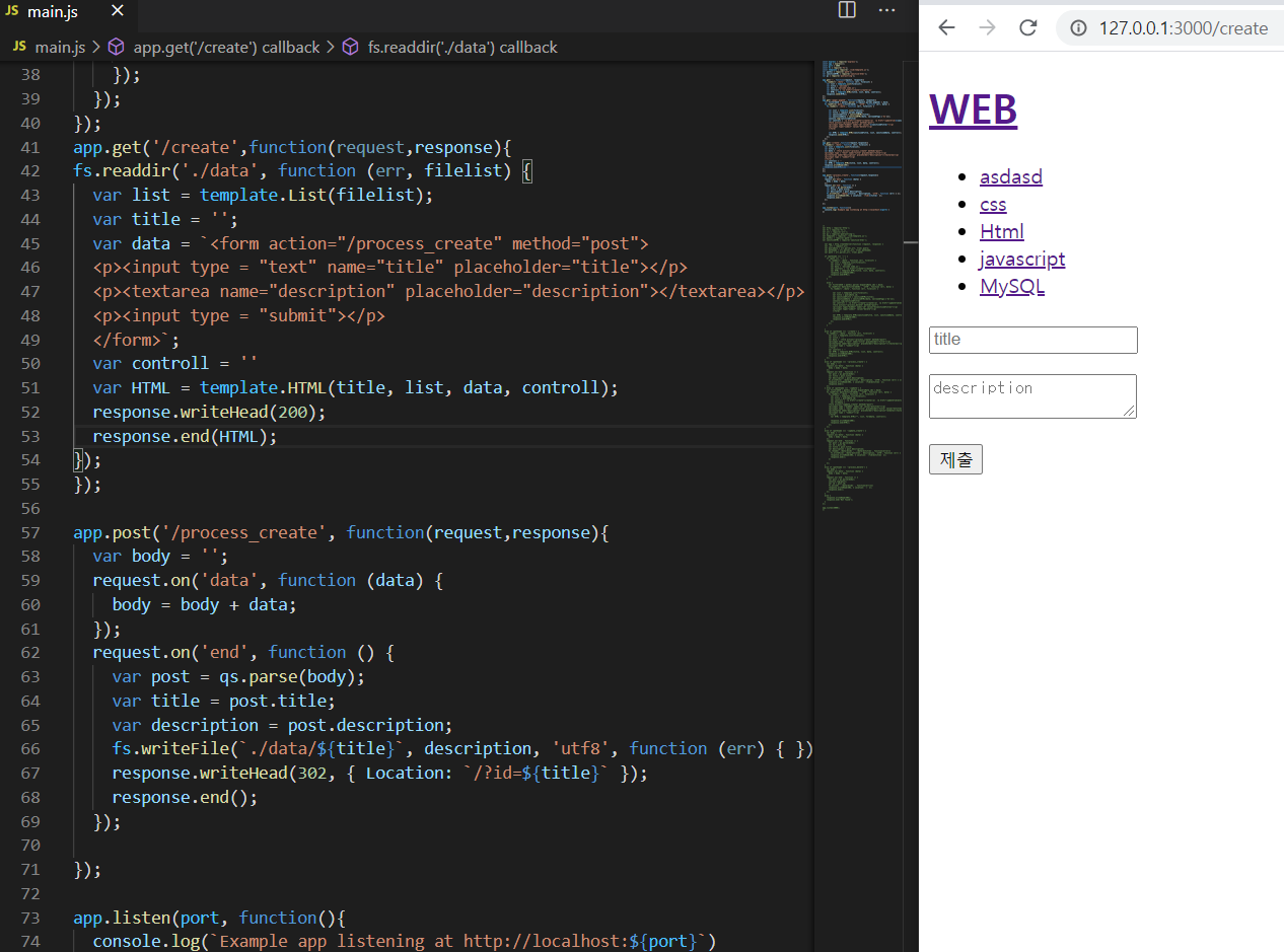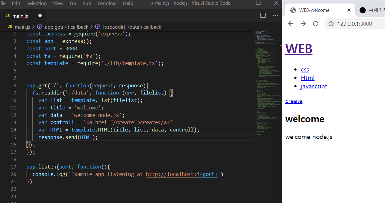 비로소 웹서버가 실행되면서 3000번 port에 listening하게 되고 그것이 성공하면 콜백함수가 실행되도록