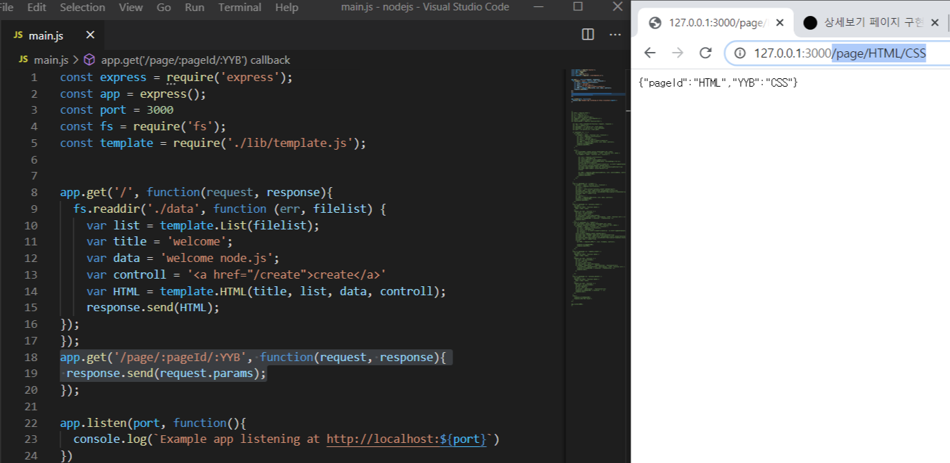 app.get의 두번째 인자인 pageId라는 속성의 이름을 가진 값으로써 HTML을 추출할 수 있게 되는 것이다