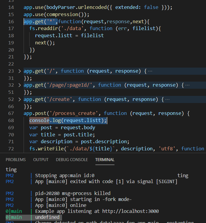 즉 app.post에서 console.log(request.list)해보면 undefined
