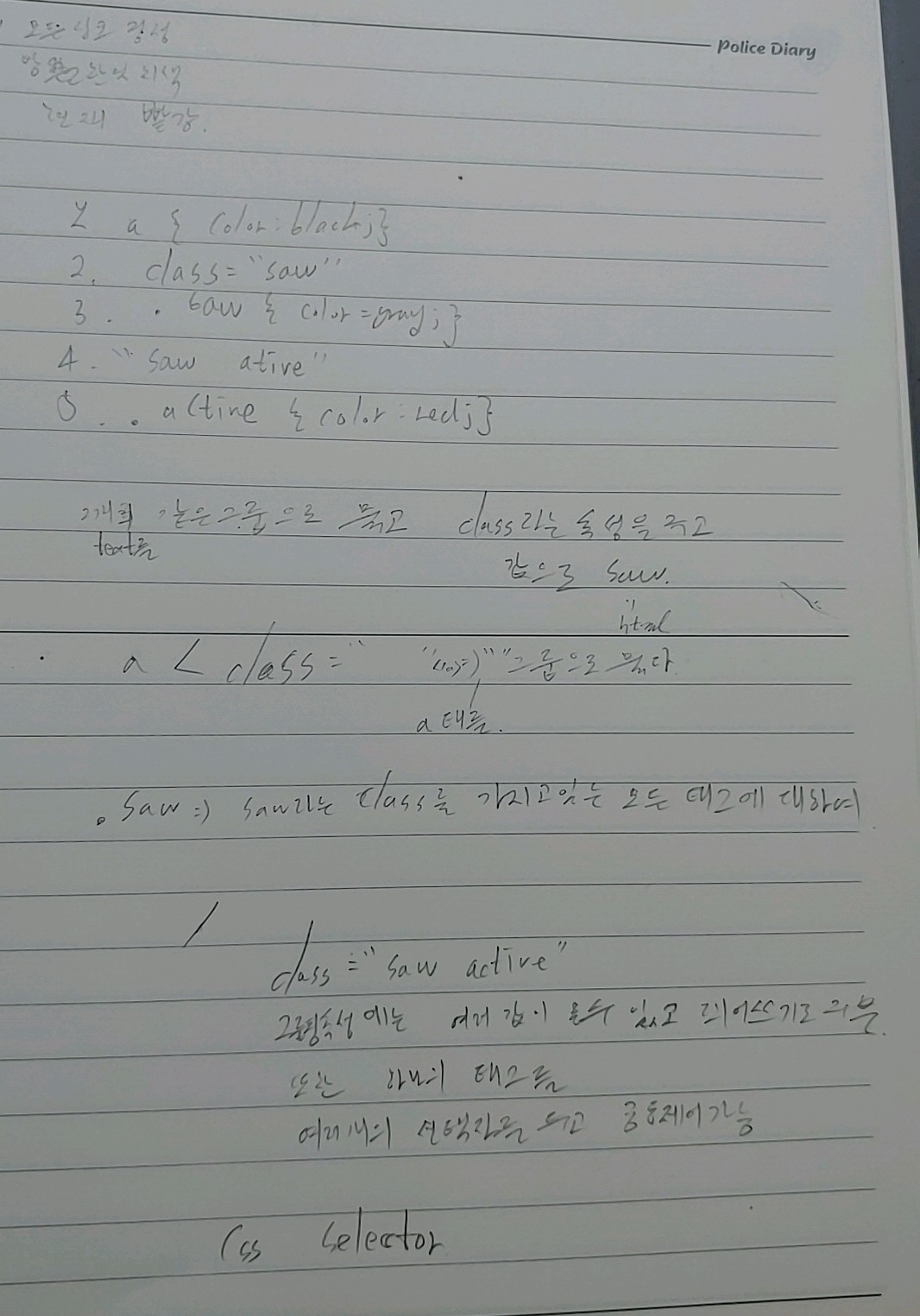 <a class="saw active"> HTML</a> 와 같이 하나의 tag에 2개 이상의 class이름을 지정할 수 있고 구별은 띄어쓰기로