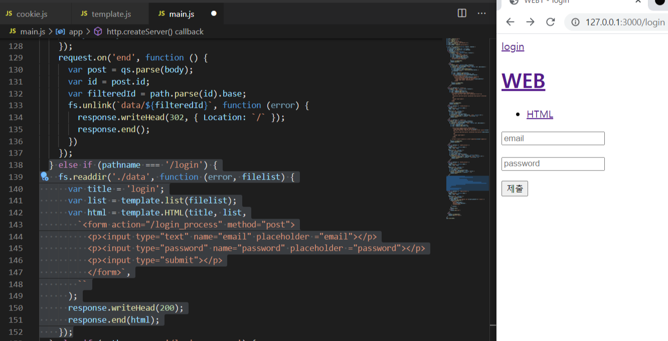 4.logout을 누르면 쿠키가 지워지면서 login으로 다시 바뀌게 하기