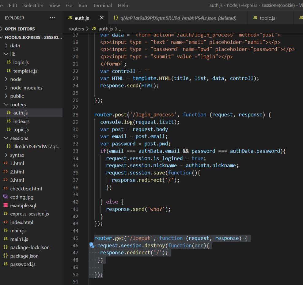 (1) 로그인 성공여부 체크하기 : console.log(request.session)를 해보면 4번에서 생성된 파일의