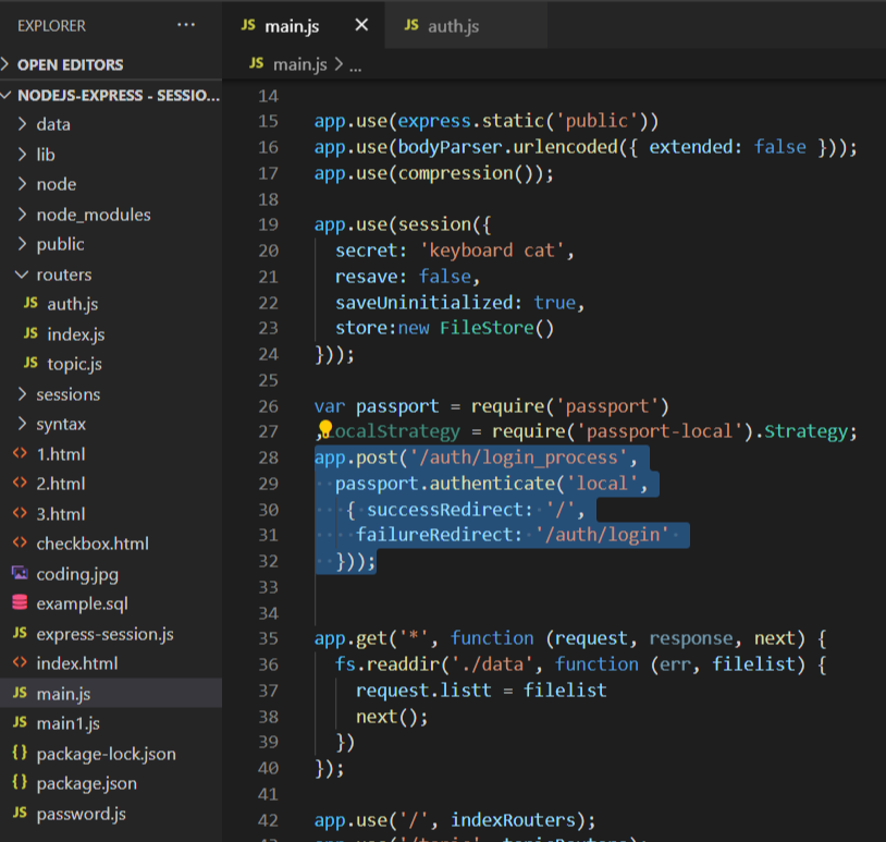 어디로 데이터를 전송하도록 되어 있냐면 routes/auth.js에서 /login_process 인데