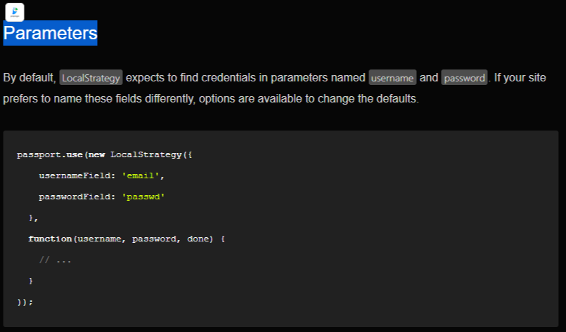 passport.use(~)안에 있는 new LocalStrategy()함수의 첫번째 인자로 객체를 주는데 이것은