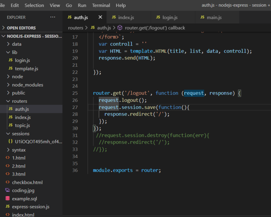 *위처럼하면 에러가 뜨는데 이를 해결하기위해 세션을 지우는 코드를 주석처리하고