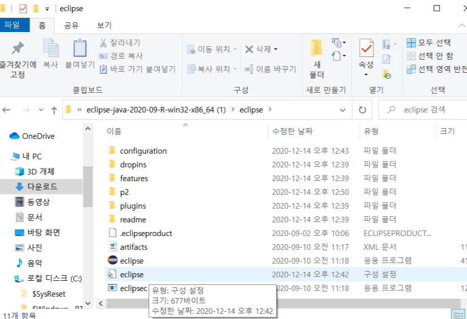 오라클 이클립스.exe 파일도 무반응 에러가 나서